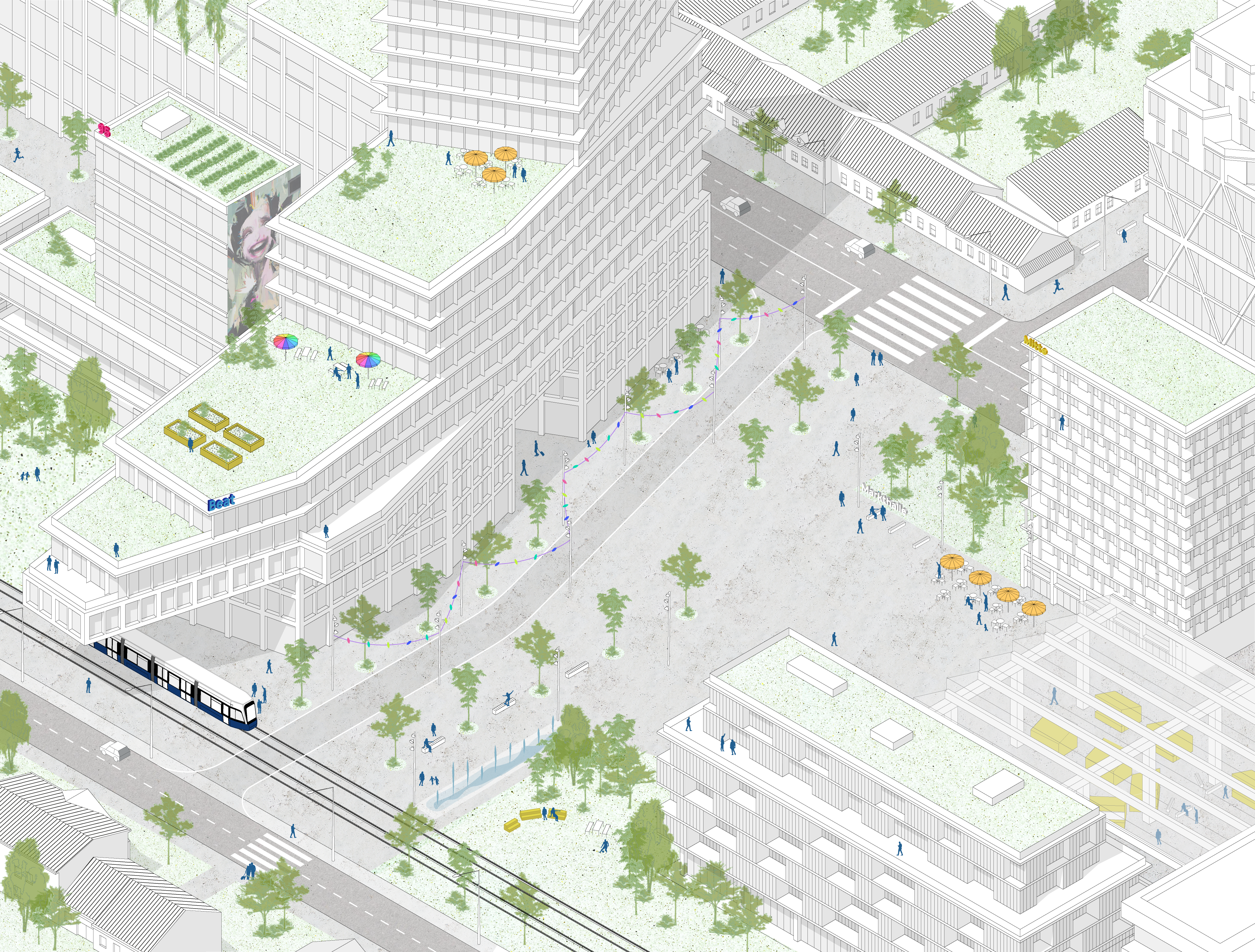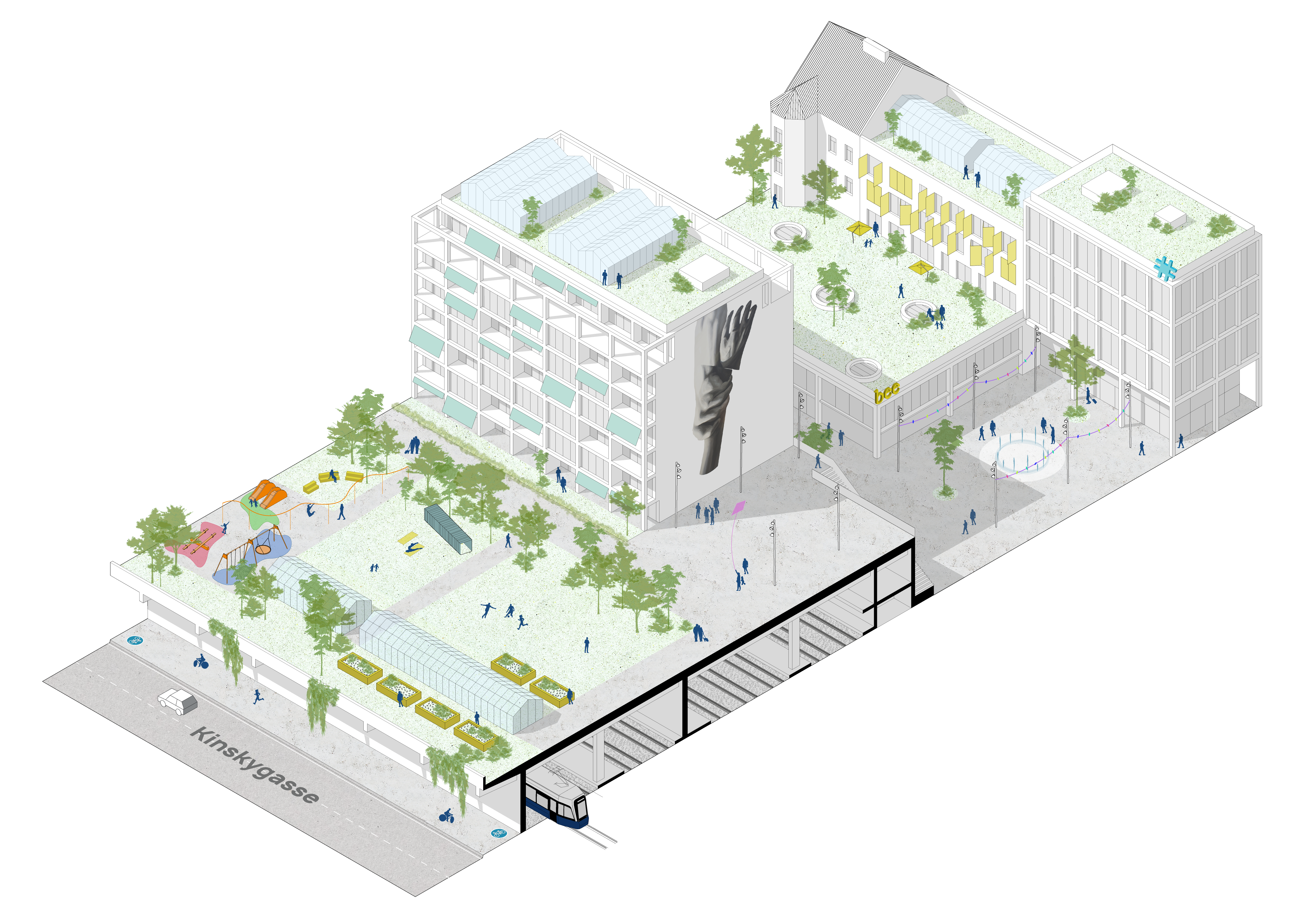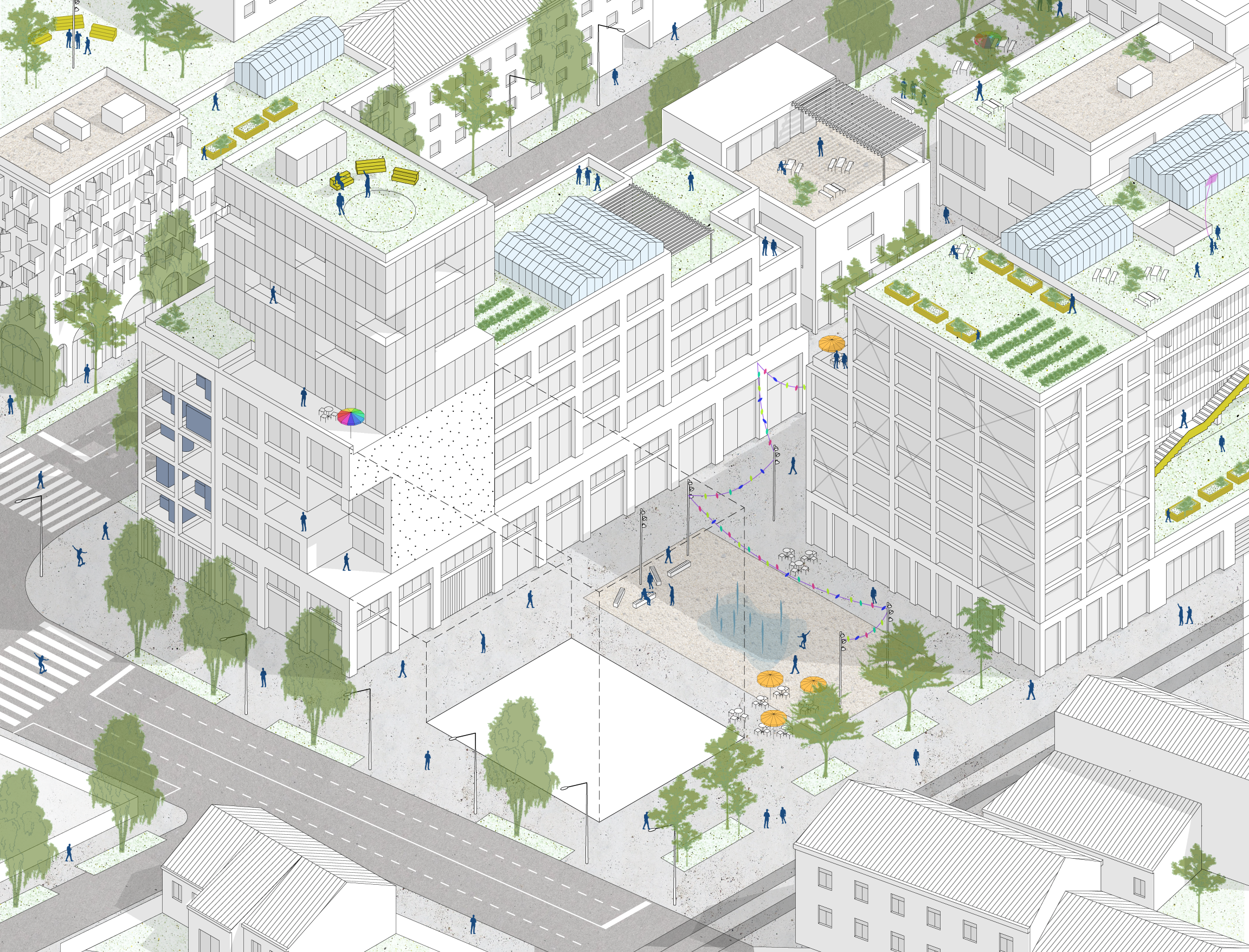 Ein Nutzungsmix ist unabdinglich um einen belebten Statdteil zu generieren. Vielseitige Nutzungen ergänzen sich und finden Synergien. Klassische Nutzungverbindungen werden aufgebrochen und neu gedacht, so ergeben sich neue Nachbarschaften. Neben neuen Produktionsstandorten soll auch neuer Wohnraum und weiteres Freizeitangebot geschaffen werden. Es soll ein Ort geschaffen werden der für alle nutzbar ist.
