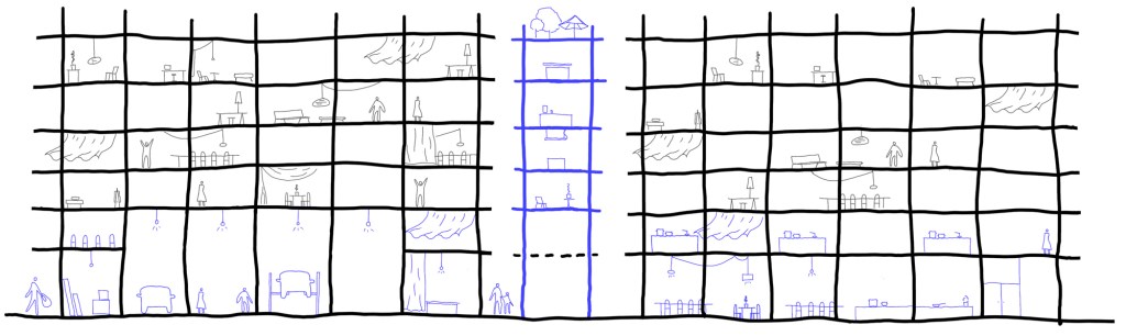 - Lage an der Kante zwischen der dichten Stadt und dem grünen Prater