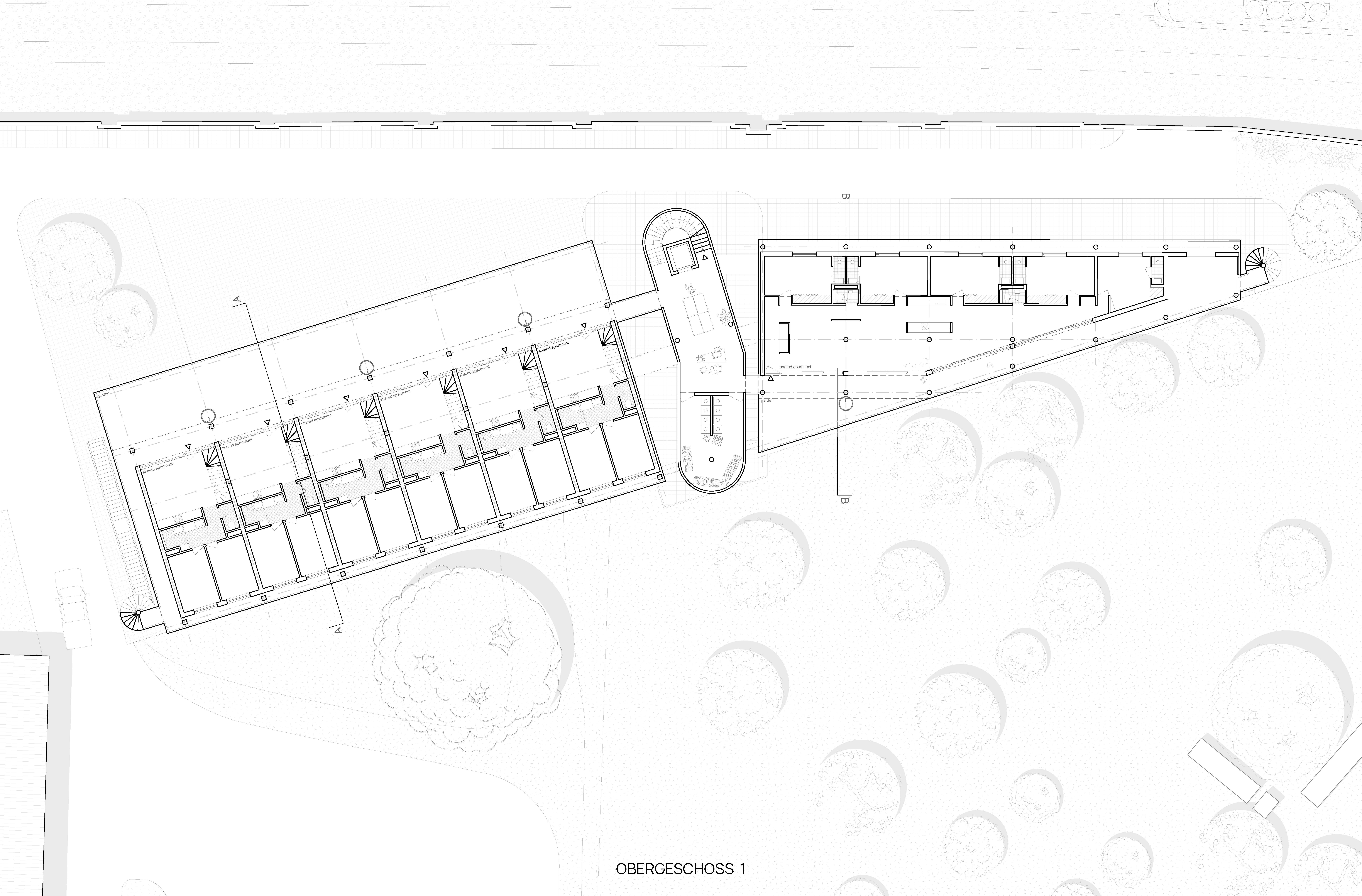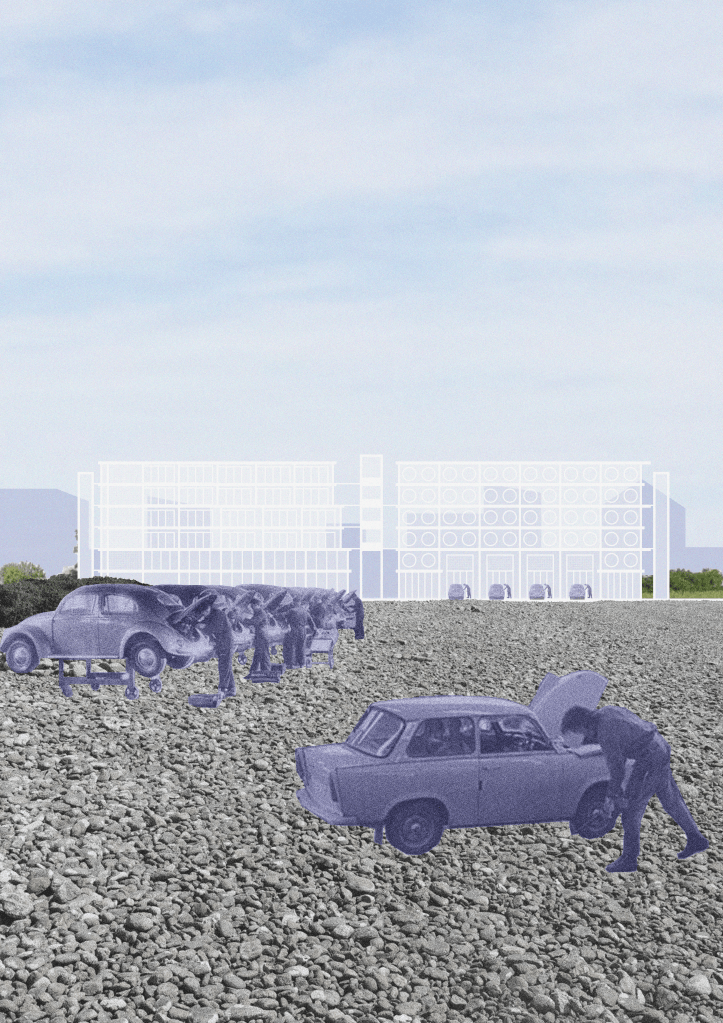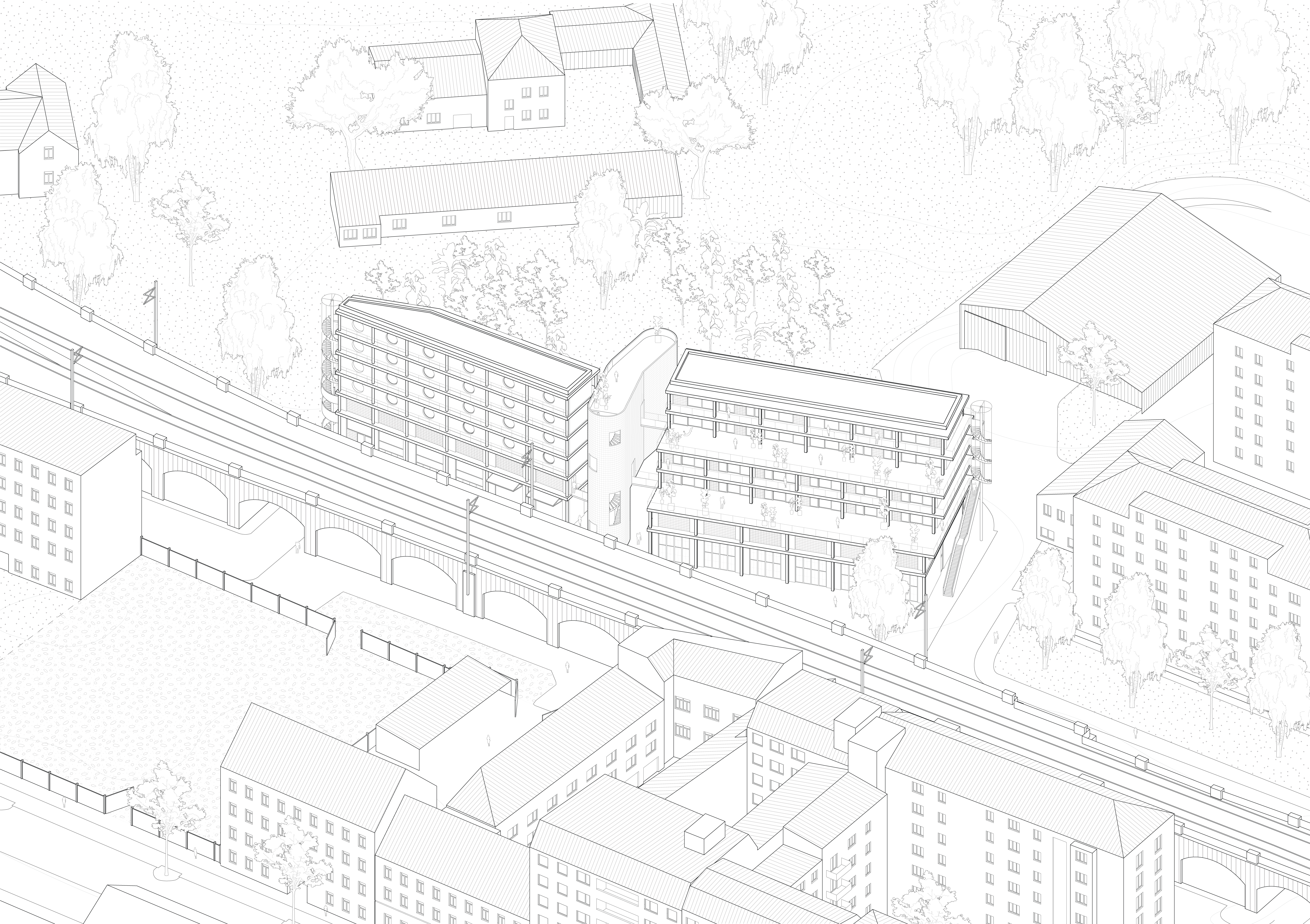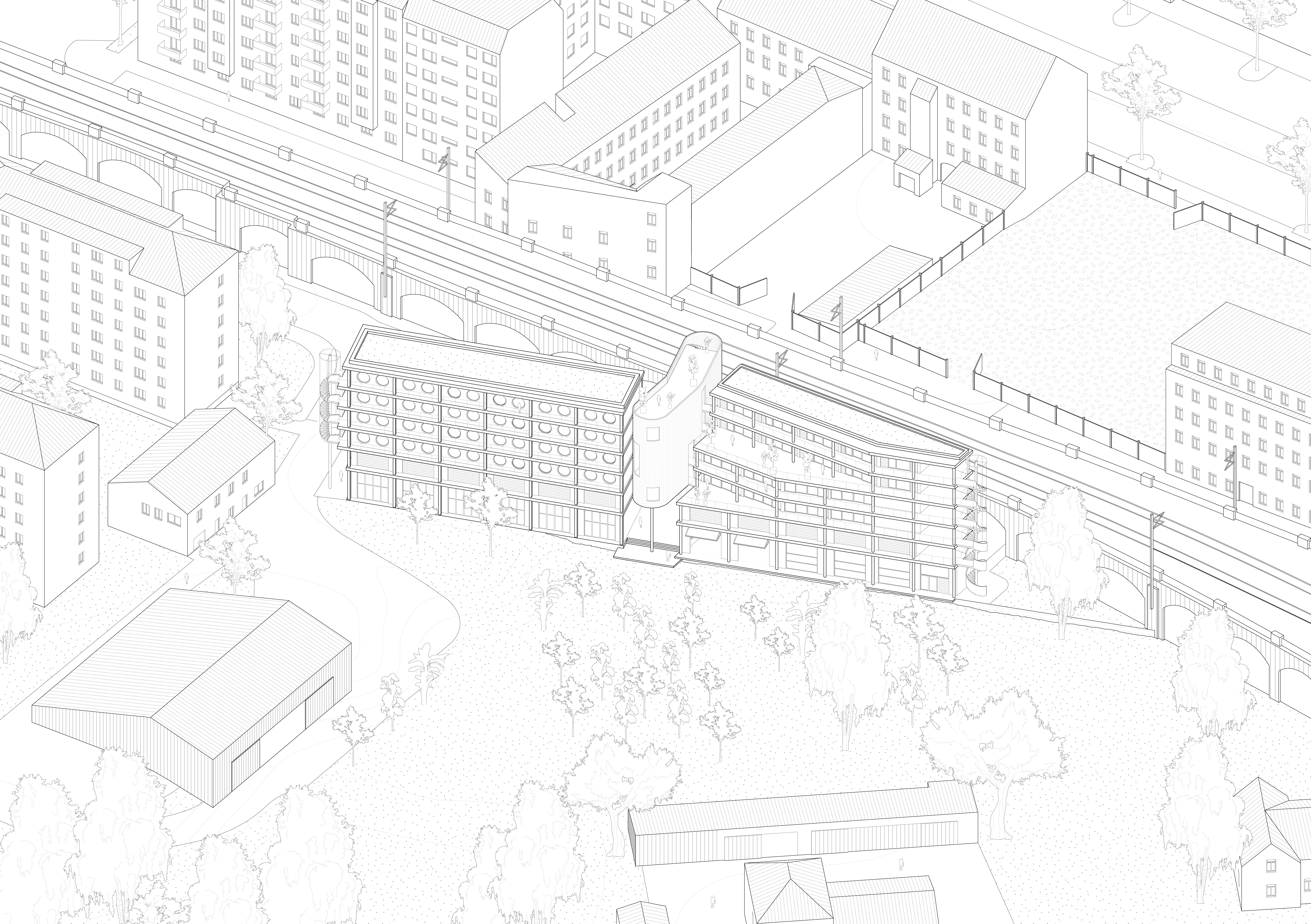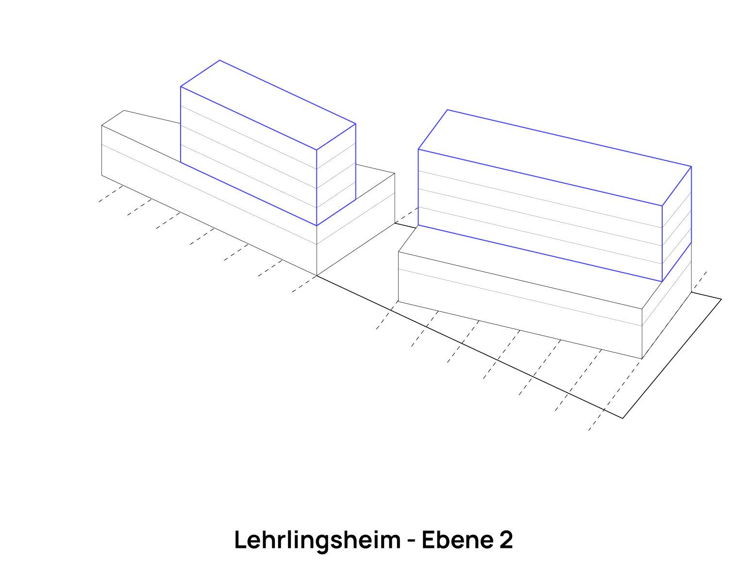 Gelegen zwischen Verbindungsbahn und Obstgarten, agiert dieser Bauplatz als Verbindung des urbanen hin zum ländlichen. Die in der Umgebung vorherrschenden Nutzungen der Automechanik und Gartenbetreuung werden an diesem Bauplatz verdichtet. Geschaffen wird ein Lehrlingszentrum, mit dazugehörigen Unterkünften in verschiedenen Wohnformen.