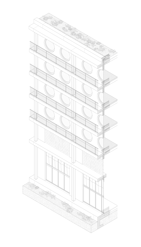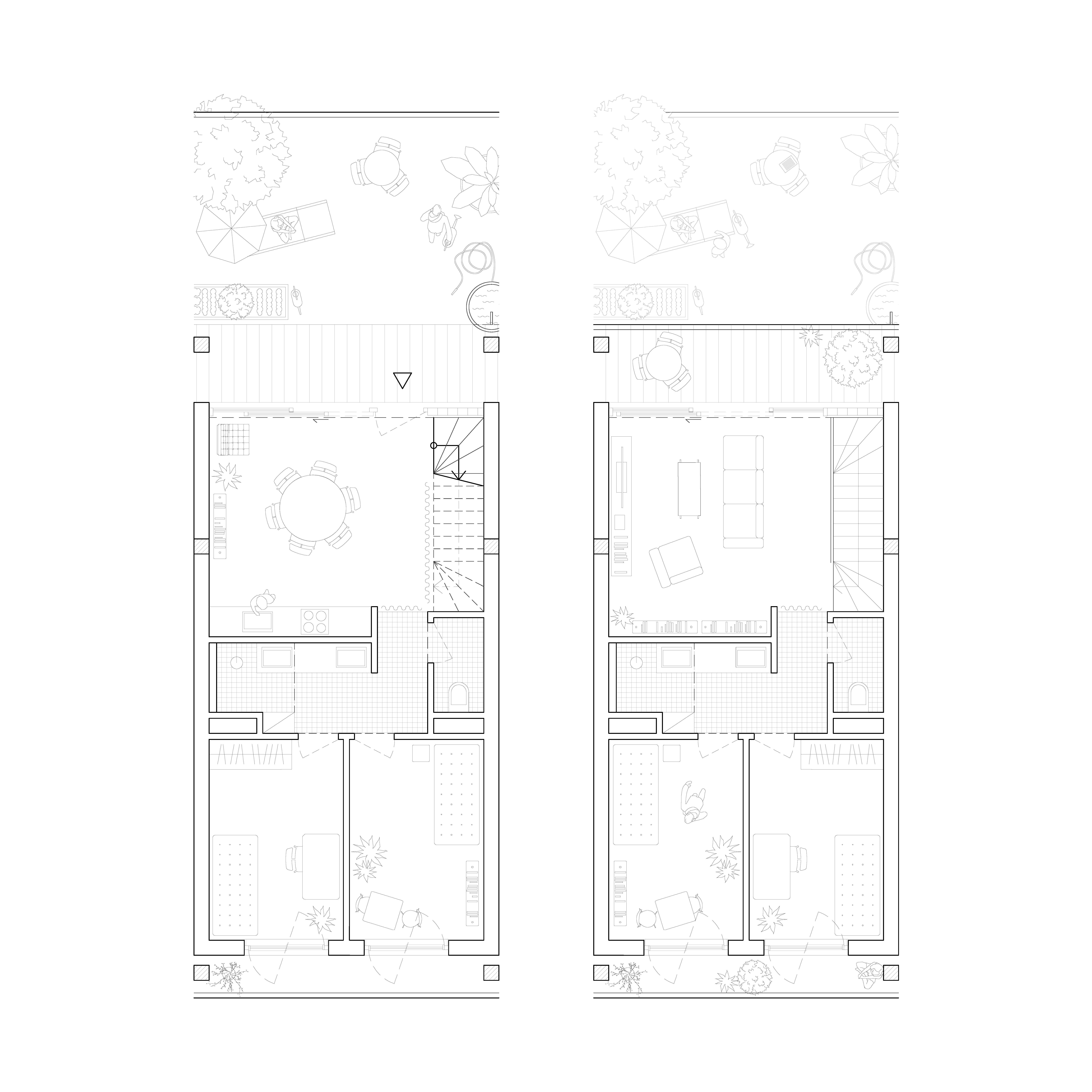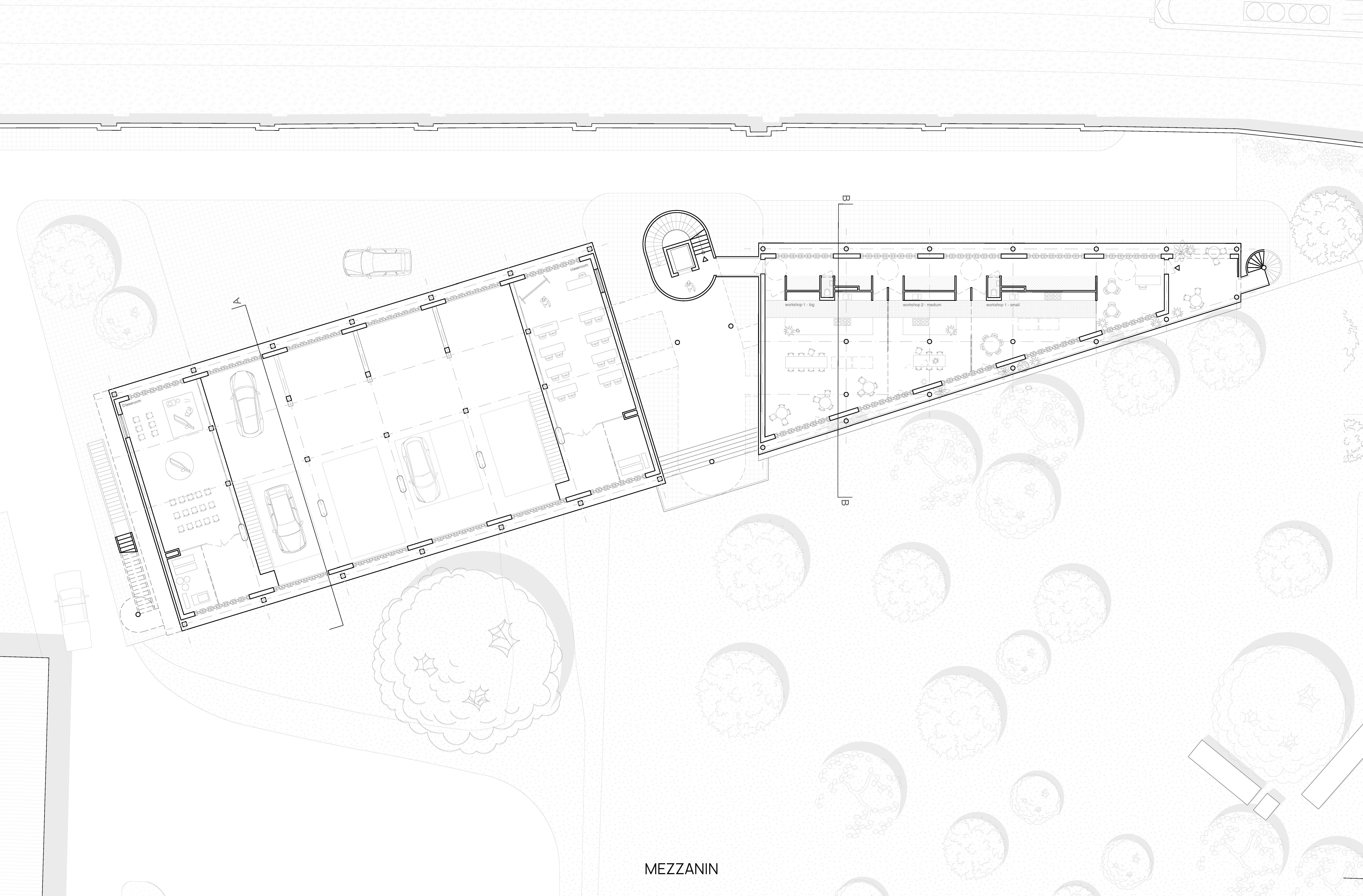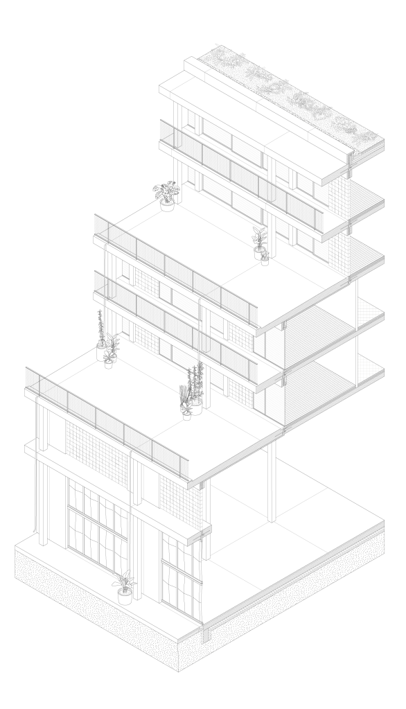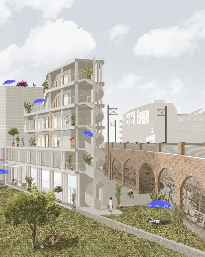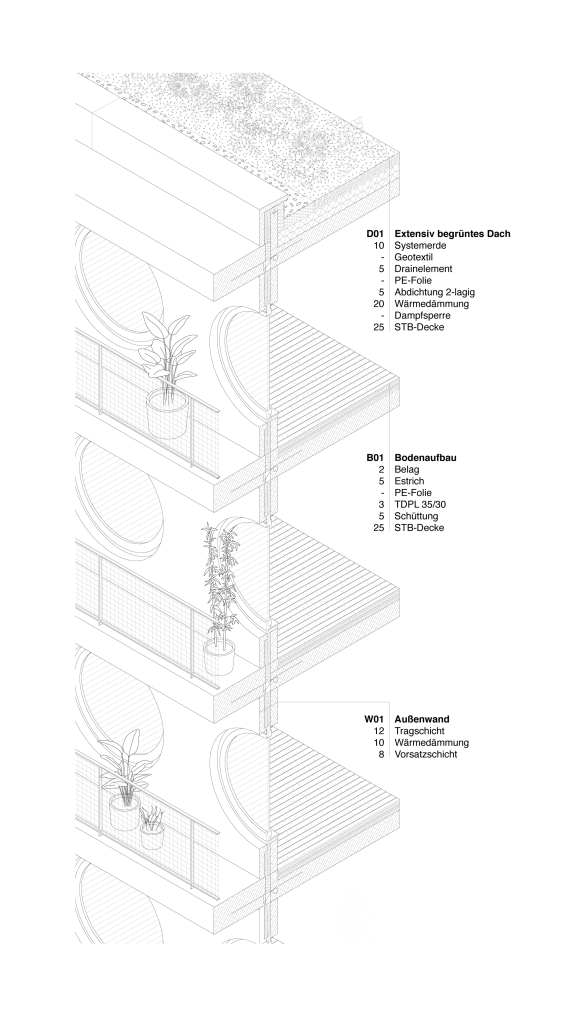 Gelegen zwischen Verbindungsbahn und Obstgarten, agiert dieser Bauplatz als Verbindung des urbanen hin zum ländlichen. Die in der Umgebung vorherrschenden Nutzungen der Automechanik und Gartenbetreuung werden an diesem Bauplatz verdichtet. Geschaffen wird ein Lehrlingszentrum, mit dazugehörigen Unterkünften in verschiedenen Wohnformen.