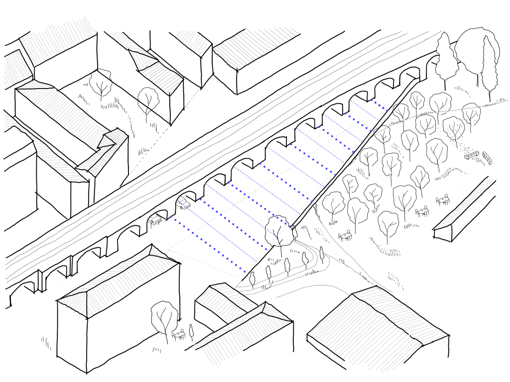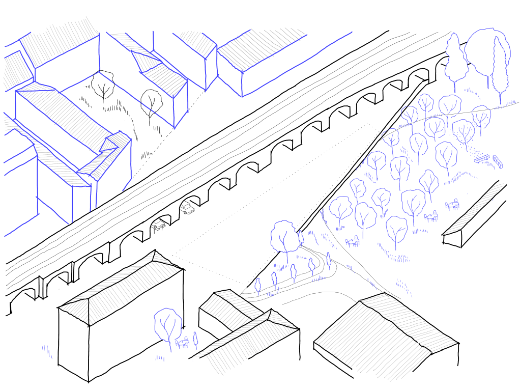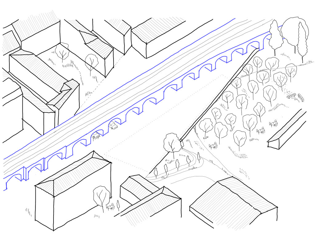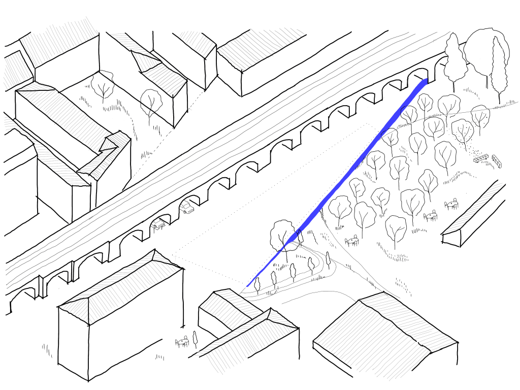 - Geländesprung zwischen urbanem Raum und Grünraum